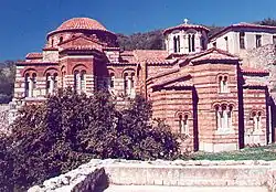 - ↑ Con sus cinco naves, cinco ábsides y trece cúpulas, este último es un ejemplo bastante inusual de arquitectura bizantina.
