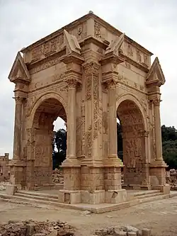Un arco de triunfo es una estructura monumental en forma de arco con uno o más pasadizos arqueados, a menudo diseñados para atravesar una calle o vía. Los orígenes del arco triunfal romano no están claros. Había precursores del arco triunfal en el mundo romano; en Italia, los etruscos usaban arcos elaboradamente decorados como puertas o portales para sus ciudades. Los ejemplos sobrevivientes de arcos etruscos todavía se pueden ver en Perugia y Volterra. Los dos elementos clave del arco de triunfo, un arco redondeado y un entablamento cuadrado, se habían utilizado durante mucho tiempo como elementos arquitectónicos separados en la antigua Grecia.