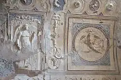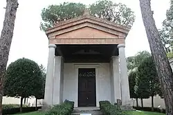- Sepulcros. Unas veces consistían sencillamente en una estela o cipos funerarios esculpidos o una simple lápida sobre el nicho que guardaba los restos y otras sobre todo durante el Imperio fueron suntuosos mausoleos como la mole Adriana (hoy castillo de Santángelo) y la tumba de Cecilia Metela, en Roma. También llegaron a formarse prolongadas series de sepulcros a lo largo de caminos como es muy de notar en la Vía Apia y verdaderos panteones de familia y enterramientos subterráneos con nichos agrupados o en filas que se llamaban columbarios conteniendo cada uno de éstos la urna cineraria de barro cocido o de piedra con relieves y con la inscripción correspondiente.