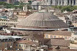 Sección del panteón de Agripa. El diámetro de la cúpula es de 43,44 m (150 pies), lo que la convierte en la mayor cúpula de hormigón en masa de la historia. -