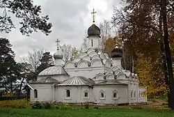 | Iglesias campanario octogonales | Una iglesia cúbica baja rodeada por varias capillas y coronada por una sucesión de formas octogonales decrecientes, con el nivel superior sirviendo como un campanario | Moscú y región de Moscú; Década de 1680 hasta los años 1710 (ver Barroco Naryshkin) |