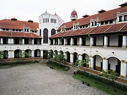 Las décadas de 1920 y 1930 vieron el advenimiento del Modernismo en las Indias Orientales Holandesas. Las características típicas incluían techos planos y formas cúbicas, con una consideración mínima de los trópicos. La ornamentación Art déco a veces se incorporó al diseño. Albert Frederik Aalbers fue uno de los representantes del movimiento moderno en Indonesia antes de la Segunda Guerra Mundial. Su obra se caracteriza por sus alzados limpios y funcionalistas, que a menudo presentan líneas curvas, y la ausencia de ornamentación externa y otros dispositivos puramente decorativos.[2]