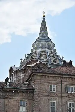El estilo barroco pronto se extendió más allá de los confines de la ciudad, llegando primero a Turín, donde la corte la casa de Saboya, particularmente receptiva, necesitaba plasmar en obras ambiciosas su reciente promoción política, y para ello empleó a un destacado trío de arquitectos: Guarino Guarini, Filippo Juvarra y Bernardo Vittone.[21][22]​</ref> Destacan la expansión de la ciudad de Carlo y Amedeo di Castellamonte, las residencias de la casa real de Saboya, las villas y palacios de Turín,[23]​ y en especial la capilla de la Sábana Santa, la iglesia de San Lorenzo y el palazzo Carignano, todos de Guarini.
