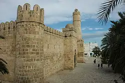El Ribat de Susa en Túnez (finales del siglo VIII o principios del IX)Vista de la Gran Mezquita de Kairuán en Túnez, originalmente fundada por Uqba ibn Nafi en 640 pero reconstruida por los aglabíes en el siglo IX