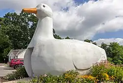 Construir arquitectura novedosa junto a las carreteras se convirtió en una manera de atraer a los motoristas a un diner, cafetería o atracción de carretera, por lo que estos edificios se diseñaron con formas inusuales, a menudo con la forma de las cosas que se vendían en su interior. Esta arquitectura «mimética» se convirtió en una tendencia, y se construyeron muchas cafeterías de carretera con forma de cafeteras gigantes, puestos de hot dogs con forma de hot dogs gigantes y puestos de fruta con forma de naranjas u otras frutas. Tail o' the Pup es un puesto de hot dogs de Los Ángeles con forma de hot dog, el Brown Derby es un restaurante con forma de bombín (en inglés, derby), la Bondurant's Pharmacy es una farmacia con forma de mortero, el Big Apple Restaurant es una manzana de 10.7 metros de altura y el Big Duck es una tienda de aves de corral con forma de pato (actualmente una tienda de recuerdos). En Montreal se encuentra el restaurante Gibeau Orange Julep, una esfera truncada de color naranja de 12 metros de altura construida en 1966 (en sustitución de una esfera más pequeña de 1945), que todavía funciona en la actualidad.[1]