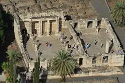 No se ha encontrado ningún edificio de tipo basilical aplicado a las sinagogas en Dura Europos sino en Galilea. Las más antiguas son de alrededor del año 200, donde se ve un edificio rectangular alargado dividido en tres naves en el sentido longitudinal. En la cabecera, un armario estaba destinado a recibir los rollos de la Torá. Las diferencias entre las basílicas y las sinagogas era la sobrelevación de la nave central en comparación con las naves laterales —lo que permitía disponer claristorios que la iluminasen— y la conexión de las columnatas mediante un pórtico transversal como en la sinagoga de Cafarnaún. En ese momento, las sinagogas tenían la puerta de entrada orientada hacia Jerusalén y en las primeras basílicas cristianas también lo estuvieron, aunque luego pasaron a orientarse al oeste, iluminando el altar la luz de la mañana. El edificio basilical se difundió mucho en todo el Imperio y se adaptaba a todas las necesidades. Debió de satisfacer las demandas de los cultos judío y cristiano.[9]