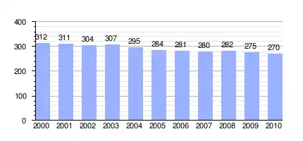 | Gráfica de evolución demográfica de Arriba-Atallo entre 2000 y 2010 |