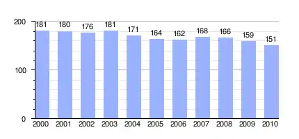 | Gráfica de evolución demográfica de Arriba entre 2000 y 2010 |