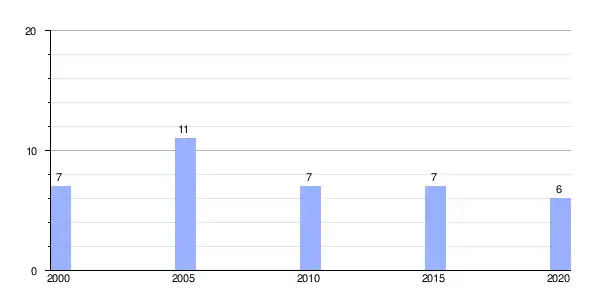 | Gráfica de evolución demográfica de Arribas entre 2000 y 2020 |