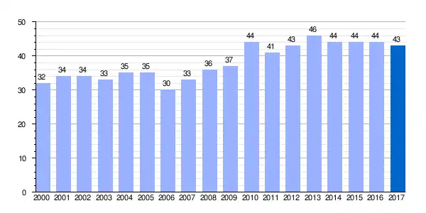 | Gráfica de evolución demográfica de Arrieta[6] entre 2000 y 2017 |