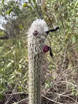En la parte delgada de los tallos (ápice), se sitúa el cefalio, una estructura lanosa donde se forman las flores.