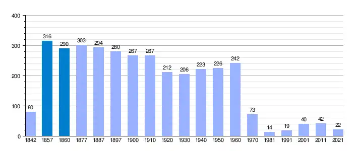 Población de derecho según los censos de población del INE     Población de hecho según los censos de población del INEEntre el censo de 1857 y el anterior, crece el término del municipio porque incorpora a Santotis y San Tirso[4]