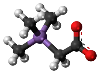 La arsenobetaína[2] es un compuesto de organoarsénico y es la principal fuente de arsénico presente en el pescado.[3][4][5][6] Es un arsénico análogo de trimetilglicina, comúnmente conocido como betaína. La bioquímica y su biosíntesis son similares a los de colina y betaína.