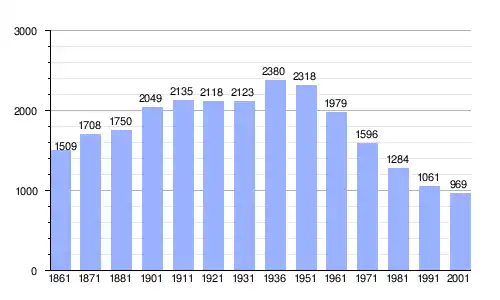 | Gráfica de evolución demográfica de Arsita entre 1861 y 2001 |