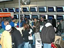 La electrónica de consumo o electrónica doméstica comprende equipos electrónicos (analógicos o digitales) destinados al uso diario, típicamente en hogares privados. Este ámbito abarca dispositivos utilizados para entretenimiento, comunicaciones y recreación. Comúnmente se les denomina «productos negros» debido a que muchos de ellos se encuentran en carcasas negras u oscuras. Este término se utiliza para diferenciarlos de los «electrodomésticos» destinados a tareas domésticas, como lavadoras y refrigeradores, aunque en la actualidad algunos de estos también son considerados electrodomésticos negros, ya que algunos están conectados a Internet.[3][4] En inglés británico, a menudo los productores y vendedores los denominan «productos marrones».[5] En la década de 2010, esta distinción a veces no está clara en las grandes tiendas de electrónica de consumo, que ofrecen dispositivos de entretenimiento, comunicación y oficina en el hogar, así como accesorios de iluminación y electrodomésticos, incluyendo aquellos destinados al baño.