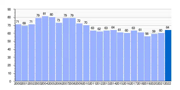 | Gráfica de evolución demográfica de Artómaña[3] entre 2000 y 2022 |