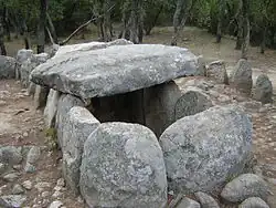 Durante el Neolítico comienzan a producirse las primeras manifestaciones arquitectónicas dedicadas a ritos funerarios o religiosos, generalmente relacionadas con la denominada cultura megalítica. Entre los principales monumentos destacan: el menhir, como los de Palaus (Agullana, Alto Ampurdán) y Murtra (San Clemente Sasebas); el dolmen, como el de Creu d'en Cobertella (Rosas) y el de Mas Bousarenys (Santa Cristina de Aro); o las galerías cubiertas, como el Cementiri dels Moros (Torrent, Bajo Ampurdán), y Cueva de Daina (Romanyá de la Selva). Más adelante, hacia el año 1000 a. C., surgen las primeras necrópolis, en las que el difunto era incinerado y depositado en urnas de cerámica; se han encontrado varias de estas necrópolis en Can Missert (Tarrasa), Can Bec de Baix (Agullana) y la Pedrera (Vallfogona de Balaguer).[7]