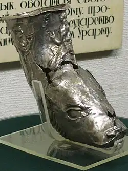 Los ritones de plata de la época de los aqueménidas combinan elementos orientales de la antigua Grecia y otros del arte de Urartu. Este aspecto ha permitido a los científicos hablar de la influencia del arte de Urartu en el arte aqueménida.[21] |