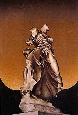 La segunda mitad del siglo XX ha visto a muchos artistas griegos ampliamente aclamados como Constantine Andreou , receptor de la Legión de Honor francesa , Thodoros Papadimitriou , un escultor internacionalmente aclamado. Giorgio de Chirico fue un influyente pintor griego-italiano surrealista que fundó el arte metafísico . Jannis Kounellis se encuentra entre los pioneros del movimiento artístico Arte Povera . Theodoros Stamos fue un reconocido pintor de expresionismo abstracto . Takis , Chrysa y Constantin Xenakis son artistas de escultura cinética de renombre internacional. Otros artistas griegos notables son Hermon di Giovanno , Varotsos , Dimitris Mytaras, Alekos Fassianos, Theocharis Mores, Dimitris Koukos (1948-), Nikos Stratakis, Steven Antonakos, Kostas Tsoklis, Nikos Hadjikyriakos-Ghikas, Thanassis Stephopoulos, Aggeilka Korovessi, y Yiannis Melanitis.[5]