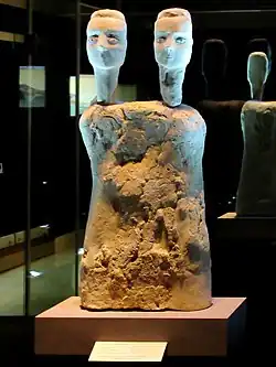Ya en el período neolítico en Jordania, se hacían figurillas y esculturas. En algunos de los primeros ejemplos, los cráneos humanos se construyeron con yeso, y se utilizaron incrustaciones para las cuencas de los ojos.[8] Dos escondites de figurillas descubiertas en Aïn Ghazal, cerca de Amán, incluyen modelos animales y unas tres docenas de figurillas monumentales (ilustradas abajo), que los estudiosos consideran importantes para el ritual y la estructura social de los pueblos que vivieron allí,[9] y pueden haber formado parte de un ritual de entierro.[10] Las estatuas de Ain Ghazal son muy grandes, con una altura de alrededor de un metro. Aïn Ghazal fue ocupada entre el 7000 y 5000 a. C. y las estatuas se han fechado alrededor de 6500 a. C..[11][12] Las estatuas, que muestran un amplio uso del yeso, representan una clara desviación de las diminutas figuras sin rostro del Paleolítico y marcan el comienzo de un arte neolítico distinto.[11]