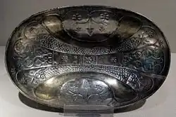 Son importantes por su belleza las joyas y fundamentalmente, las labores de plata como platos con escenas de cacería. Han sobrevivido varios recipientes de plata de la época sasánida, especialmente grandes platos y boles para servir comida. Tienen decoración grabada o labrada de alta calidad, con temas procedentes del repertorio cortesano de héroes o reyes a caballo, escenas de caza, combate y banquetes, a menudo, parcialmente dorados. Aguamaniles, presumiblemente para el vino, puede presentar bailarinas en relive. Fueron exportados a China, y también hacia el oeste.[41]