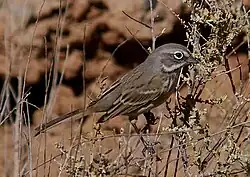 - Martin, John W.; A. Carlson, Barbara (1998). «Sage Sparrow (Amphispiza belli)». The Birds of North America Online (A. Poole, Ed.) (en inglés) (Ithaca: Cornell Lab of Ornithology). Consultado el 1 de diciembre de 2009.