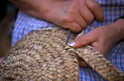 Las hojas, una vez secas no pueden ser trabajadas debido a que no tienen elasticidad, y al trenzarlas se romperían. Por ello es necesario tratarlas de forma que adquieran la suavidad necesaria para poder ser trenzadas. El primer paso es escaldar las hojas en agua hirviendo; pasado un rato se sacan y se dejan secar durante un día. Gracias a esto vuelven a coger elasticidad y pueden ser utilizadas para el trenzado.