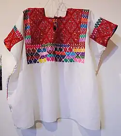 La ropa tradicional para los hombres se compone de un sarape tejido en colores oscuros como azul, verde o morado y con acentos florales, es producida en antelho, Oxchuc y Huixtán. Para las mujeres, blusas y faldas en los mismos tonos, así como rebozos (o chales) bordados con flores.[9][6]