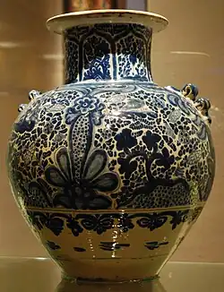 La cerámica más conocida de este tipo se llama Talavera poblana, llamada así por el fondo blanco de cerámica de Talavera de la Reina de España, que se trató de imitar.[1] Al igual que este, la Talavera de Puebla se caracteriza por un fondo blanco, lo cual se logró con sales de estaño y elementos decorativos en su mayoría de color azul que utilizan sales de cobalto. Se ha utilizado para jarrones, porcelana, figuras esculpidas y baldosas. Blanco con azul sólo como decoración es el más tradicional, pero hay otros colores que se aceptan también. La decoración azul de Puebla Talavera es a la vez del este y el oeste. La cerámica vidriada fue inventada en Asia y llegó a México a través de Europa, especialmente España. Sin embargo, también existe influencia asiática directo en el trabajo a causa de las mercancías orientales que llegaron al país en el Galeón de Manila. El uso de Talavera poblana y otros azulejos también distingue a la arquitectura de Puebla, que se encuentran en las fachadas de los edificios más importantes en todo el estado.[1]