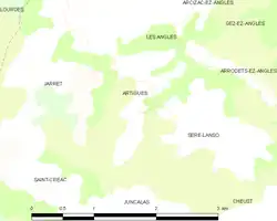 Artigues es una población y comuna francesa, situada en la región de Mediodía-Pirineos, departamento de Altos Pirineos, en el distrito de Argelès-Gazost y cantón de Lourdes-Est.