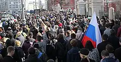 - ↑ «На улицах городов России задержали более 400 человек. Они ничего не делали, но их подозревают в попытке свергнуть режим». Meduza (en ruso). Consultado el 13 de julio de 2018.