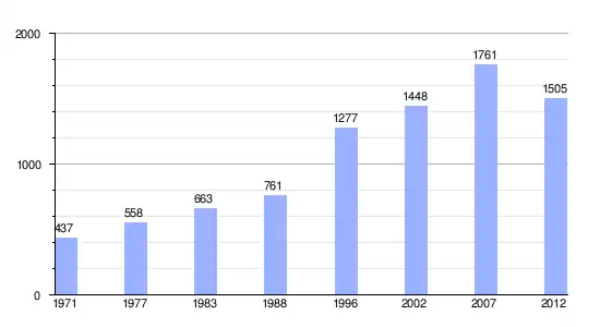 | Gráfica de evolución demográfica de Arutua entre 1971 y 2012 |