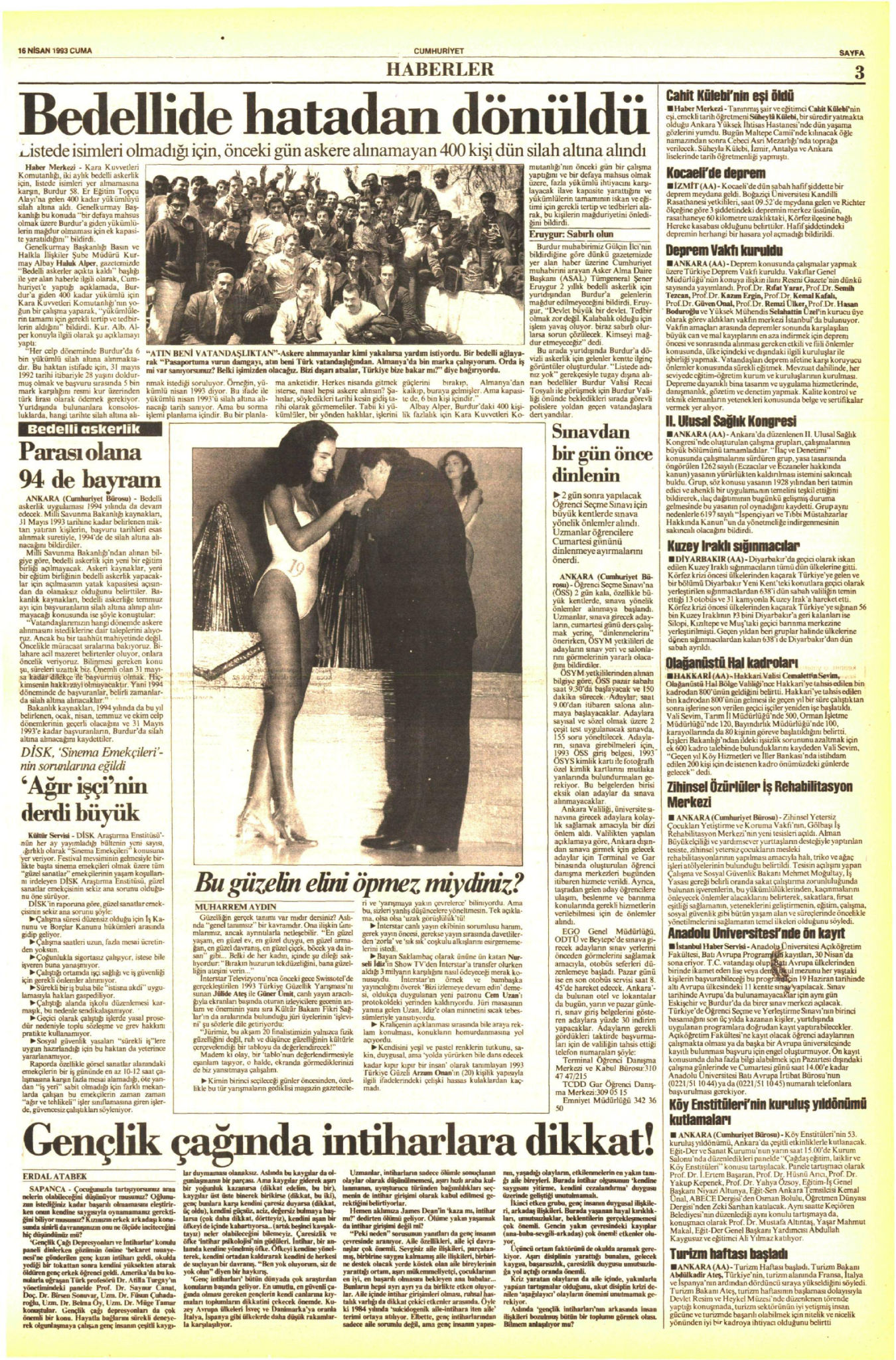 - ↑ «Bu güzelin elini öpmez miydiniz?» [¿No besarías la mano de esta belleza?]. Cumhuriyet (en turco). 16 de abril de 1993. p. 3. Archivado desde el original el 26 de agosto de 2025. Consultado el 26 de agosto de 2025.