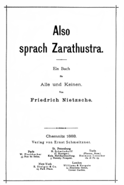 Así habló Zaratustra. Un libro para todos y para nadie[1]​ (título original en alemán: Also sprach Zarathustra. Ein Buch für Alle und Keinen) es un libro escrito por el filósofo alemán Friedrich Nietzsche entre 1883 y 1885 considerado su obra maestra.