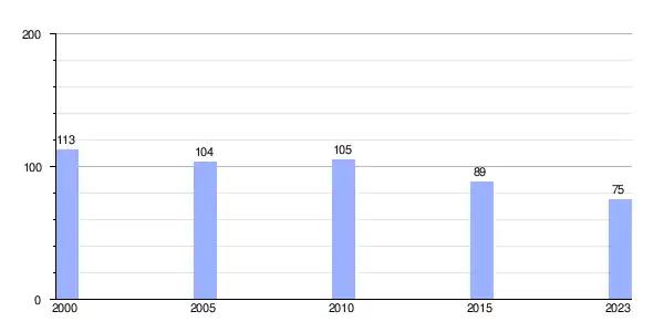| Gráfica de evolución demográfica de As Casas da Veiga entre 2000 y 2023 |