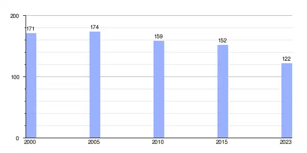 | Gráfica de evolución demográfica de As Casas dos Montes entre 2000 y 2023 |