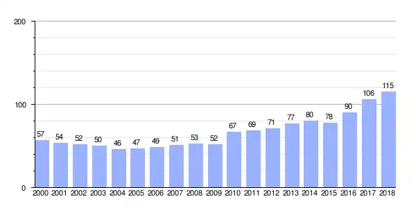 | Gráfica de evolución demográfica de Cortes entre 2000 y 2018 |