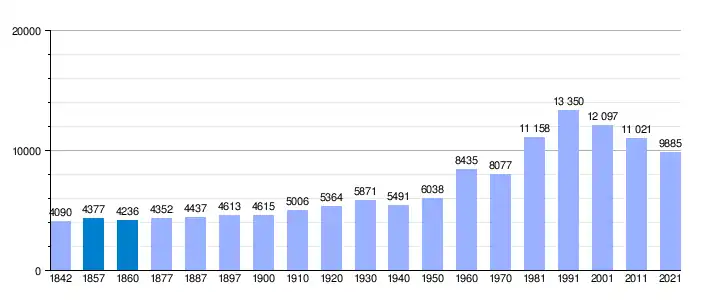 Gráfica de evolución demográfica de Puentes de García Rodríguez[10]​ entre 1842 y 2021