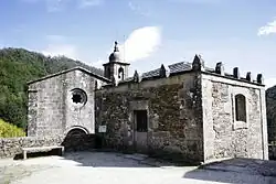 El Monasterio de Caaveiro está situado en pleno corazón del parque natural de las Fragas del Eume. Se ubica en un emplazamiento rodeado por el espeso bosque y cursos de agua. En el siglo X fue fundado por San Rosendo con la función de ser una capilla, pero fue ganando importancia hasta convertirse en monasterio benedicino. La influencia que tuvo fue tanta que en el año 1107 quedó exento de la autoridad del arzobispado de Santiago de Compostela. En el siglo XIII el monasterio llegó a la categoría de Real Colegiata de la orden de San Agustín. En el siglo XVIII dejó de acoger la vida de los clérigos. Fue con la desamortización de 1849 que salió a subasta el monasterio quedando en manos de particulares lo que supuso su decadencia. En 1896 un vecino de la zona obtuvo una autorización del arzobispado para restaurarlo. En la actualidad el monasterio restaurado y sus alrededores son propiedad de la Diputación de La Coruña.[16]