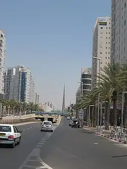 La ciudad moderna de Asdod fue construida en las afueras del sitio histórico del asentamiento original, en arenas vírgenes. El desarrollo siguió un plan principal de desarrollo.[34] Los planificadores dividieron la ciudad en diecisiete barrios de diez a quince mil personas. Amplias avenidas entre los barrios hacen que el tráfico fluya relativamente fluido dentro de la ciudad. Cada vecindario tiene acceso a su propio centro comercial, parque urbano y infraestructura de salud y educación. El plan original también pedía un centro comercial y administrativo, construido a mediados de la década de 1990, cuando la población de la ciudad creció rápidamente más del doble en diez años.[35]