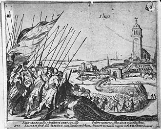 El asedio de La Esclusa de 1604, que también se conoce con el nombre de Campaña de La Esclusa o batalla de la Línea de Oostburg, fue una serie de operaciones militares de la guerra de los Ochenta Años y de la anglo-española de 1585-1604 que se llevaron a cabo entre el 19 de mayo y el 19 de agosto de 1604.[9] Un ejército anglo-holandés al mando del príncipe Mauricio de Nassau y de Horace Vere cruzó el estuario del Escalda y avanzó por tierra apoderándose en su marcha de Cadzand, Aardenburg y IJzendijke, hasta entonces parte de los Países Bajos Españoles.[10] La campaña concluyó con la toma del puerto de La Esclusa.[11]
