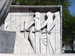 Por otro lado, el asesinato de Calvo Sotelo y sus circunstancias decantaron a muchos militares, que todavía dudaban o permanecían indiferentes, a sumarse a la conspiración contra el gobierno que se venía fraguando desde abril bajo la dirección del general Mola y que, solo cuatro días después del asesinato del líder monárquico, desembocaría en el golpe de Estado de julio de 1936, cuyo fracaso parcial desencadenó la guerra civil española. Los vencedores en la guerra proclamaron a Calvo Sotelo como el «protomártir»[5] de su «Cruzada de Liberación». Se levantaron monumentos en su honor (el más importante, situado en la plaza de Castilla de Madrid, fue inaugurado personalmente por el generalísimo Franco en 1960) y en prácticamente en todas las ciudades españolas se le dedicó una calle o una plaza.[6] Una empresa estatal del INI fundada en 1942 llevaría su nombre.
