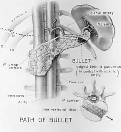 ![]() El presidente Garfield con James G. Blaine luego de ser disparado por Charles J. Guiteau | ||