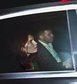 ![]() Amanda Knox, tras salir de la cárcel de Perugia en octubre de 2011. | ||