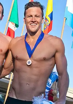 En el Campeonato Mundial de Natación de 2013 celebrado en Barcelona ganó la medalla de plata en los relevos de 4 x 100 metros estilos, nadando el largo de espalda con un tiempo individual de 53.55 segundos, tras Francia (oro) y por delante del equipo japonés (bronce).