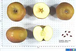 - ↑ Hampson, Cheryl R.; Kemp, Henk (2003). Apples. Botany, Production and Uses, ed. Characteristics of Important Commercial Apple Cultivars. CABI Publishing. pp. 62. ISBN 0-85199-592-6.