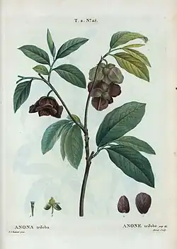 - ↑ a b «Asimina triloba». Tropicos.org. Missouri Botanical Garden. Consultado el 18 de julio de 2013.
