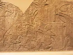 Tan importante como el uso el hierro fue para los asirios el cambio de táctica de guerra y asedio de ciudades. Hasta el momento era muy difícil tomar una ciudad por asalto y por eso el sistema preferido era aislar e impedir la admisión de alimentos lo cual suponía una larguísima espera y el consiguiente debilitamiento por ambas partes. El nuevo sistema de ataque consistió en la invención de nuevas máquinas pesadas y con ruedas, blindadas y protegidas y equipadas con arietes. Los soldados aprendieron su manejo y eran capaces de abrir grandes fisuras en las murallas dando paso a la entrada del resto del ejército. Los sitiados caían así en una trampa de la que no podían salir victoriosos, añadiendo además la imposibilidad de huir. A continuación se desataba el pillaje, el abuso, el saqueo y todo tipo de crueldades. Con Asurnasirpal II (883-859 a. C.), hijo del anterior se emplearon estos métodos de guerra con gran éxito.[75]​ Este rey reconstruyó la ciudad de Kalhu y la nombró su capital, en sustitución de la antigua Aššur. La arqueología llevada a cabo en este lugar ha dado un verdadero tesoro en inscripciones halladas en los monumentos, sobre el devenir de este rey. Se sabe de él entre otras cosas que sus campañas bélicas fueron numerosas, devastadoras y brutales.[76][64]