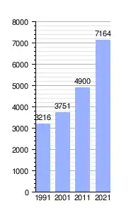 | Gráfica de evolución demográfica de Astigarraga[13] entre 1991 y 2021 |