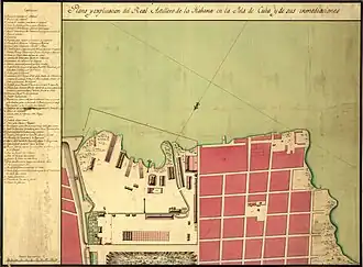 ![]() Plano y explicación del Real Astillero de La Habana en la ysla de Cuba y de sus inmediaciones (Library of Congress, fecha y autor desconocido) | ||